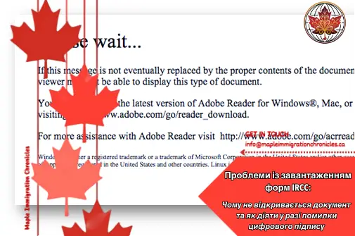 У більшості випадків така помилка пов’язана не зі збоєм вебсайту IRCC, а з некоректною перевіркою цифрового підпису документа, через що система блокує доступ до файлу або забороняє його завантаження.